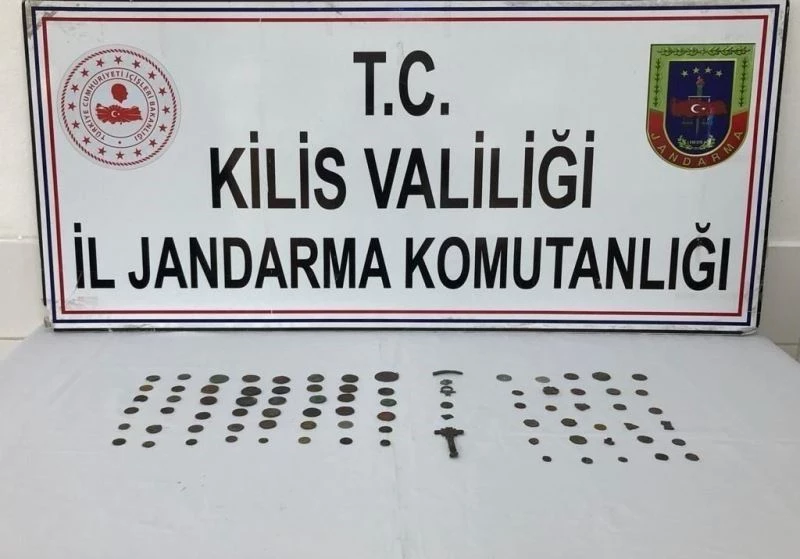 Kilis’te, jandarma ekipleri 84 adet sikke ile birlikte 2 kişiyi yakaladı.