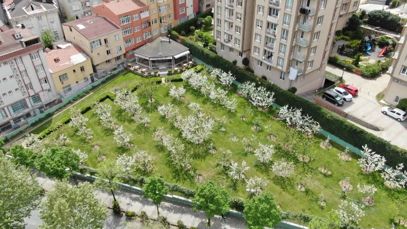 Bağcılar’ın göz bebeği Nostalji Bahçelerinden biri olan Kiraz bahçesindeki ağaçlar çiçek açtı. Adeta beyaz gelinlik giyen görüntüsüyle eşsiz bir güzelliğe kavuşan bahçe, ilçe sakinlerine görsel bir şölen sunuyor.