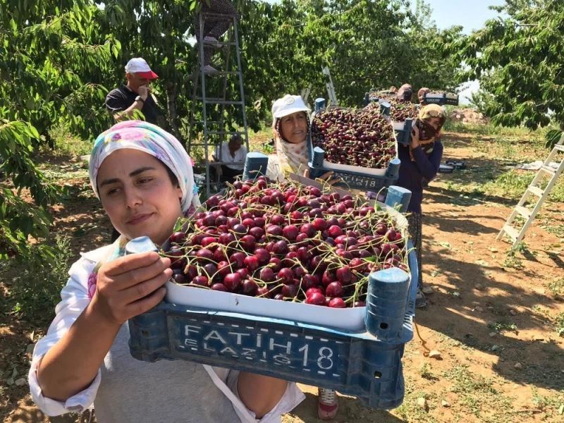 Kalite ve lezzetiyle bilinen Harput bölgesindeki köylerde yetiştiği için "Harput Kirazı" adını alan kirazın hasadı köylerde tamamlandıktan sonra merkez mahallede de başladı.Sabah erken saatlerden gelen mevsimlik işçiler, yoğun bir mesai harcayarak kirazı dalından tek tek toplayarak hasadı gerçekleştirdi. Mevsimlik işçilere ekmek kapısı olan hasat bu yıl üreticisini de sevindirdi. Kentte yıllık ortalama 4 bin ton üretimi yapılan kiraza Türkiye’nin dört bir yanından talep olduğu, bu yıl geçmiş yıllara oranla daha verimli olduğu belirtildi.