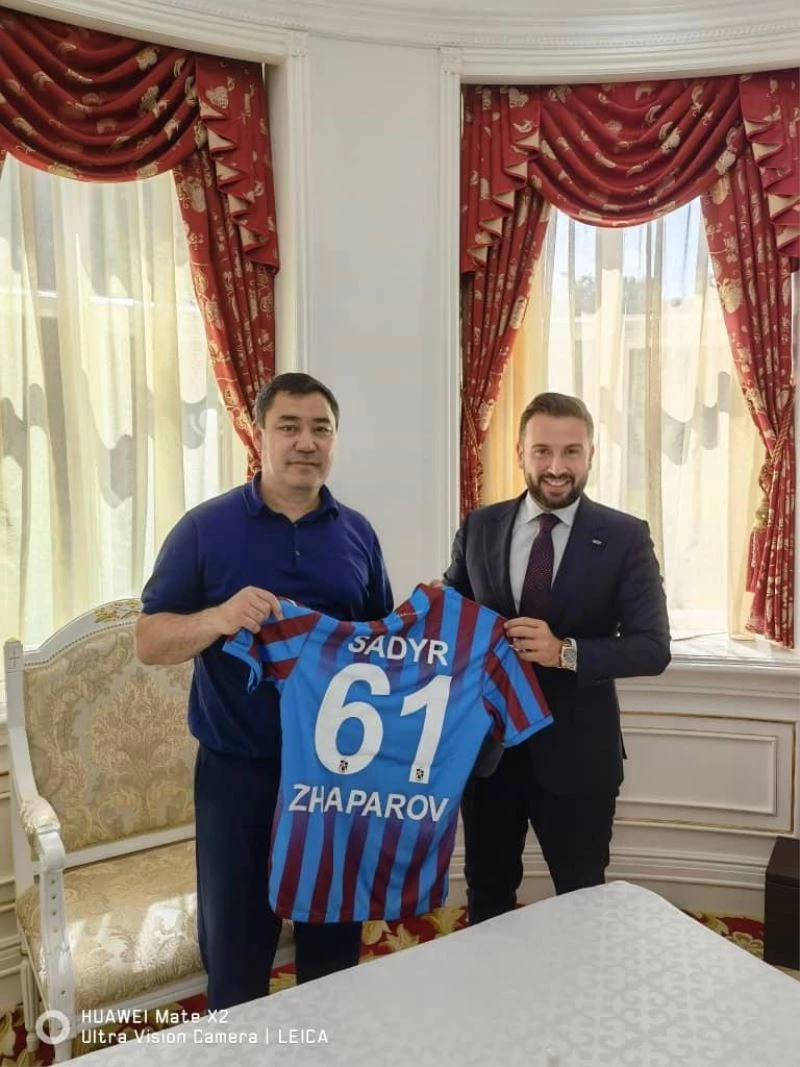 Görüşmeyle ilgili konuşan iş insanı Birhan Emre Yazıcı “Kırgızistan Devlet Başkanı Sadyr Zhaparov bizi makamında kabul etti. Kırgızistan’ın yapılanmasında, NKY. Olarak oynayacağımız rolü ve tabiki Trabzonspor’u konuştuk. Yakın bir zamanda Trabzon’a gelecek. Ona da artık her yer Trabzon” dedi.