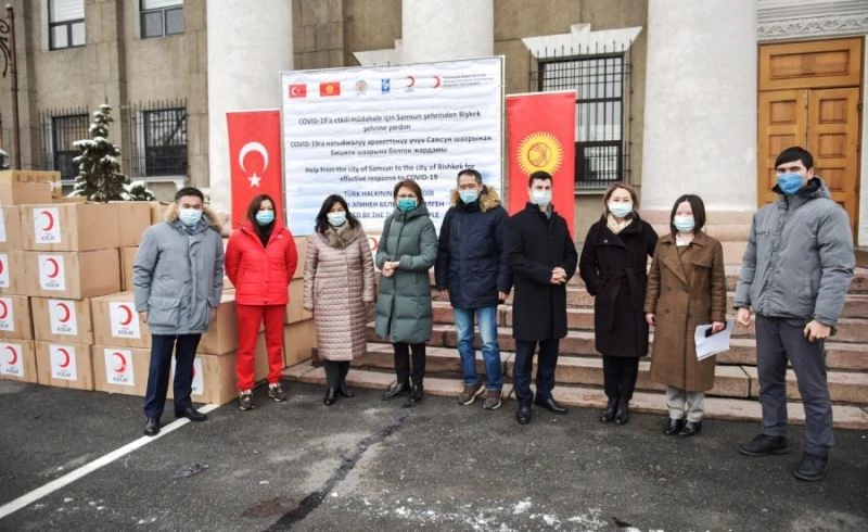 Korona virüs salgıyla mücadele eden Kırgızistan’ın maske talep etmesi üzerine harekete geçen Samsun Büyükşehir Belediyesi, bir ilki gerçekleştirdi. Samsun ile Bişkek arasındaki kardeş şehir uygulamalarında Başkan Mustafa Demir’in talimatı ve vatandaşların katkısıyla hazırlanan 180 bin adet maske ile çeşitli sağlık malzemelerini bölgeye gönderdi. 16 Ekim’de yola çıkan Türk Kızılayı, Samsun Büyükşehir Belediyesi’nin sağlık kolilerini Kırgızistan’ın başkenti Bişkek’e ulaştırarak Kırgız Kızılayı’na teslim etti. Bişkek Hükümet Ofisi’ne getirilen yardım ürünlerinin vatandaşlara en kısa sürede dağıtılacağı belirtildi.