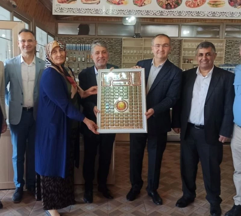 Yemek sonunda kaymakamlık ve belediye tarafından hazırlanan Allah’ın 99 isminin yazılı olduğu (Esma-ül Hüsna) tablolar, şehit annelerine hediye edildi.