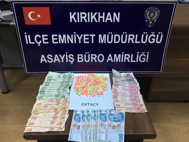 Kırıkhan İlçe Emniyet Müdürlüğü Asayiş Büro Amirliği ekiplerince uyuşturucu ve uyarıcı madde ticareti ile mücadele kapsamında yapılan çalışmalarda, K.Ç. isimli şahsın Mimar Sinan Mahallesindeki evinde yapılan aramada 306 adet Extacy hap ve 1890 TL para ele geçirildi.