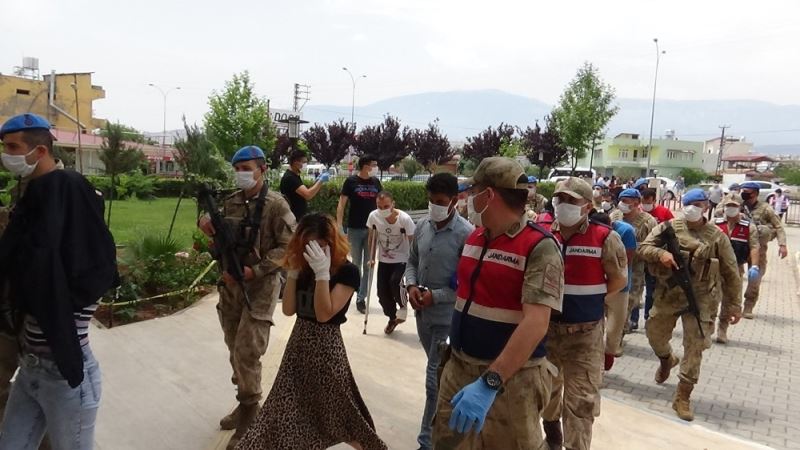 Olayla ilgili 1’i Suriye uyruklu 34 şüpheli gözaltına alındı. Kırıkhan ilçe jandarmada sorguları tamamlanan 34 şüpheliden 15’i il ve ilçe jandarmanın geniş güvenlik önlemleri altında adliyeye sevk edildi. 19 şüphelinin sorgusuna devam ediliyor.