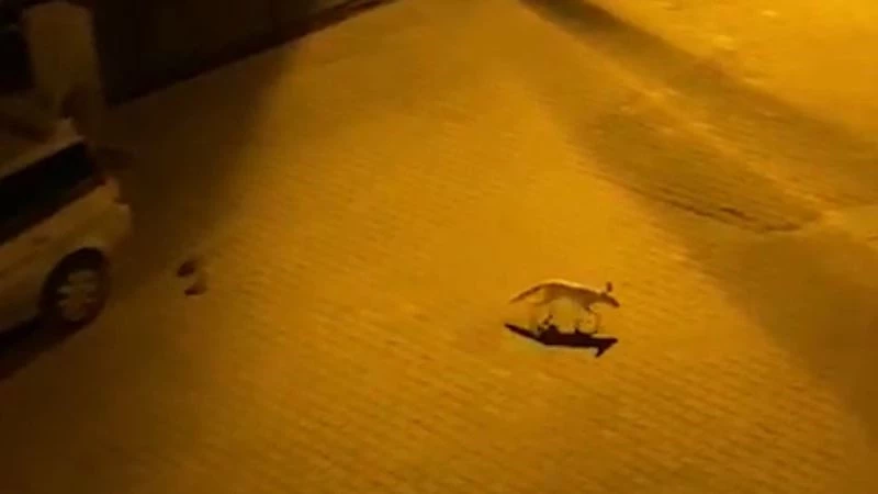 Kırıkkale’de doğal yaşam alanlarında yiyecek bulmakta zorlandığı düşünülen bir tilki, akşam saatlerinde kent merkezine indi. Sokak üzerinde ürkek davranışlarla bir süre yiyecek arayan tilki, umduğunu bulamayınca kaçarak çevreden uzaklaştı. Tilkiyi fark eden bir kişi ise cep telefonu kamerasıyla o anları kaydetti. Gece olması dolayısıyla etrafta kimsenin olmamasını değerlendiren tilki bir süre sonra gözden kayboldu.