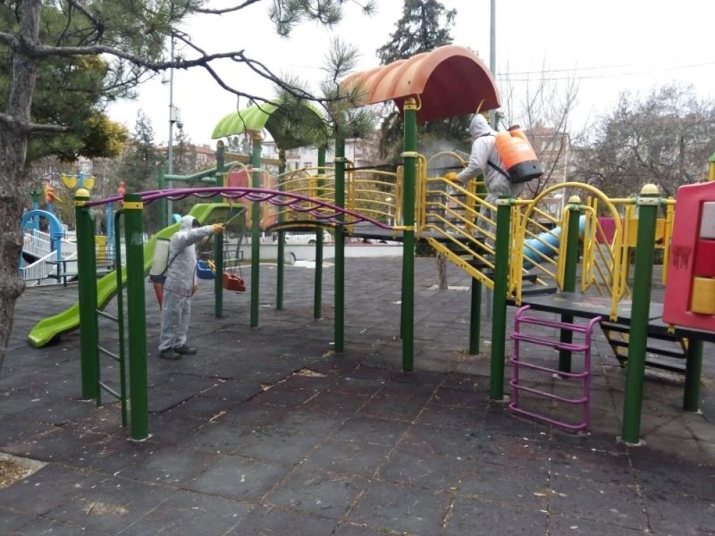 Kırıkkale Belediyesi ekipleri, korona virüs tedbirleri kapsamında dezenfekte çalışmalarına ara vermeden devam ediyor. Camiler, kuran kursları, okullar, sağlık kuruluşları, eczanelerden sonra berber, kuaför ve güzellik salonlarının yanı sıra çocukların izin saatlerinde vakit geçirdiği parklarda dezenfekte ediliyor.