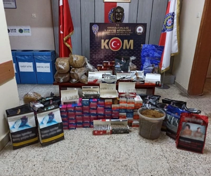 İl Emniyet Müdürlüğü Kaçakçılık ve Organize Suçlarla Mücadele Şubesi ekipleri, Tütün ve Tütün Mamulleri Kaçakçılığı ile Silah Kaçakçılığına yönelik Kırıkkale Cumhuriyet Başsavcılığı koordinesinde çalışma başlattı. Bu kapsamda ekipler A.S. isimli şahsın Delice ilçesindeki iş yerinde aramalarda bulundu. Aramada, 2 bin 828’i doldurulmuş diğerlerinin içi boş 17 bin 228 makaron, 30 tekel bandrolü, 31 kilogram açık kıyılmış tütün ve 11 paket 1 kilogramlık tütün ile bir kutu cinsel içerikli hap ele geçirildi. A.S. hakkında adli ve idari işlem başlatıldı.
