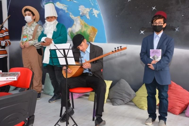 Kırıkkale’nin Bahşılı ilçesinde kurulan bir kütüphanenin açılışında öğrenciler tarihi karakterlere bürünerek canlandırdı.