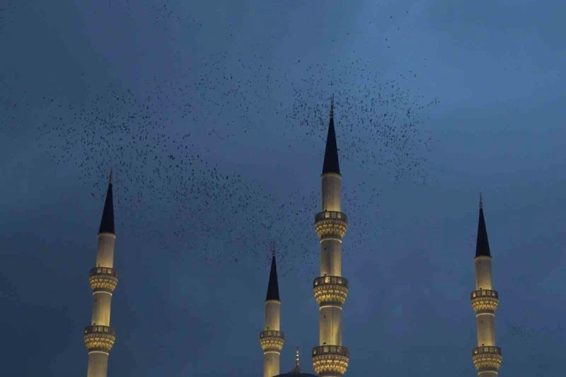 Kırıkkale’de, Nur Camisi ve çevresinde görülen sığırcık kuşları, akşam saatlerine doğru gökyüzü semalarında uçtu. Sergiledikleri figürlerle adeta dans eden sığırcık kuşları, ani dönüş hareketleriyle izleyenlerin dikkatini çekti. Kuşların doğal gösterisi havanın kararmasıyla sona erdi.