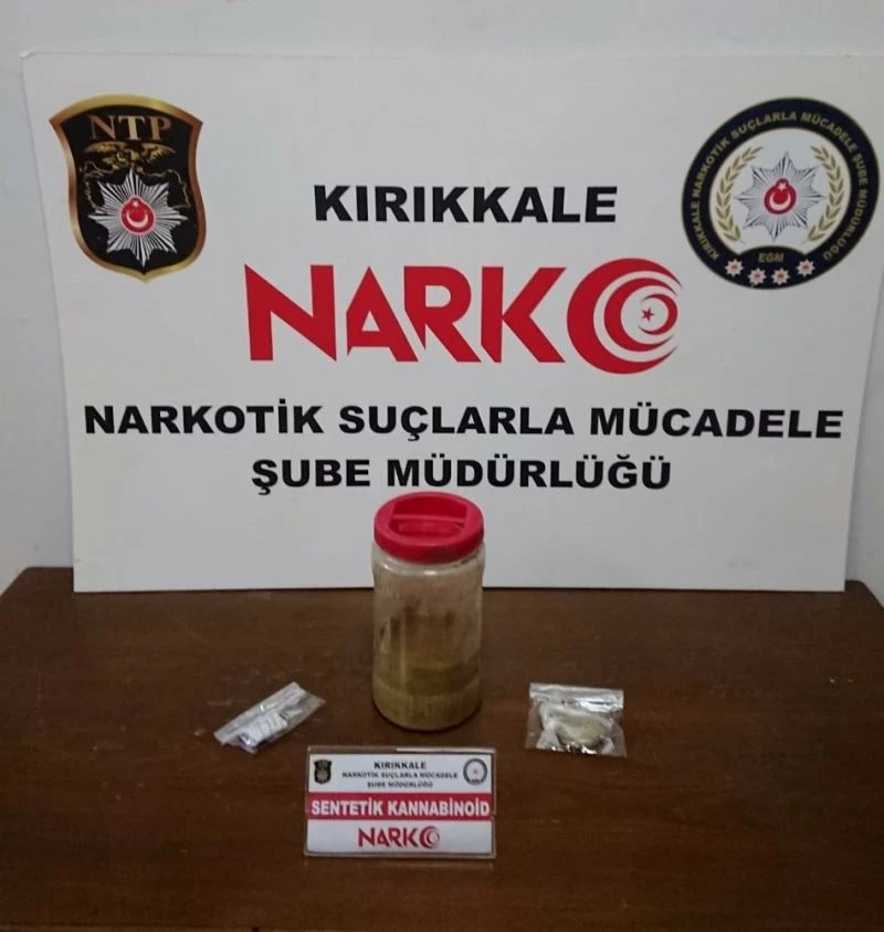 Alınan bilgiye göre, İl Emniyet Müdürlüğü Narkotik Suçlarla Mücadele Şube Müdürlüğü ekipleri, kentte uyuşturucu madde ticareti yapan ve uyuşturucu madde kullanımına yer temin eden şahıslara yönelik operasyon düzenledi. Kırıkkale Cumhuriyet Başsavcılığı koordinesinde gerçekleştirilen operasyonda 355,61 gram sentetik kannabinoid maddesi ele geçirildi. Çalışmanın devamında ise ikametten şahıslara uyuşturucu madde satışı yaptığı tespit edilen Ö.M. isimli şahıs yakalanarak gözaltına alındı.