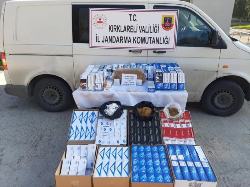 Kırklareli İl Jandarma Komutanlığı Kaçakçılık Organize Suçlarla Mücadele ekipleri, kaçakçılık olaylarına geçit vermiyor. Jandarma ekiplerince Kırklareli’nin Vize İlçesine bağlı Soğucak Köyü yol ayrımı mevkiinde şüphe üzerine bir araç durduruldu. Adli makamlardan alınan arama kararına istinaden araçta yapılan aramada 106 bin adet içi tütünle doldurulmuş makaron, 19 bin 600 adet boş makaron, 85 adet mükerrer kullanım için toplanmış bandrollü ve 5 kilogram sarmalık kıyılmış tütün ele geçirildi. Olayla ilgili 1 şüpheli Cumhuriyet savcısının talimatı doğrultusunda gözaltına alındı. Olayda ele geçirilen malzemelere ise el konuldu. Kırklareli İl Jandarma Komutanlığı’nca kaçakçılıkla mücadele kapsamında icra edilen faaliyetlere kararlılıkla devam edileceği vurgulandı.