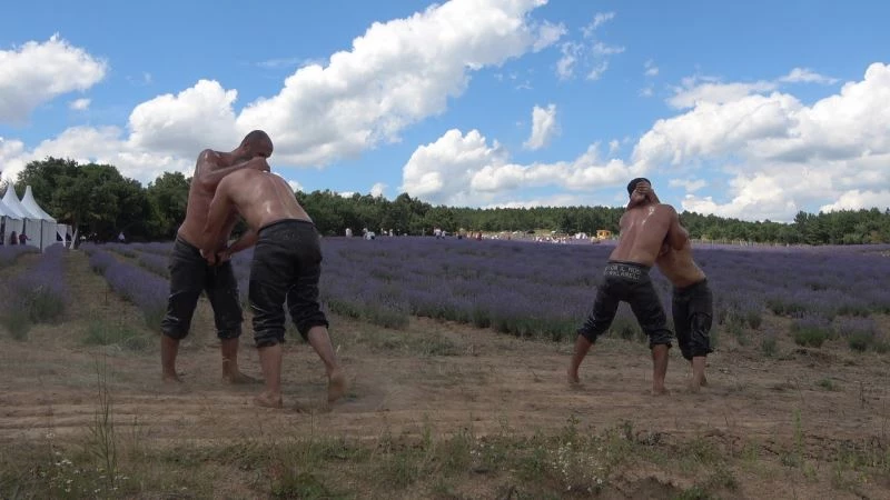 Kırklareli Valiliği himayelerinde düzenlenen 1. Kırklareli Lavanta günleri etkinliklerine katılan güreşçiler, 9-11 Temmuz’da gerçekleştirilecek 660. Tarihi Kırkpınar Yağlı Güreşleri öncesi hazırlıklarını lavanta tarlalarında sürdürüyor.