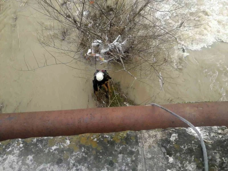 Kırklareli’nde sağanak yağış sebebiyle derenin debisinin yükselmesi sonucu kum adacığında mahsur kalan köpek, itfaiye ekiplerince kurtarıldı.