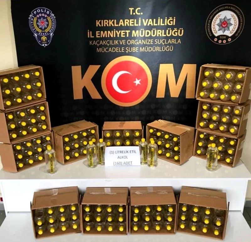 Kırklareli’nde durdurulan minibüste 160 litre sahte içki ele geçirilirken, 2 kişi de gözaltına alındı.