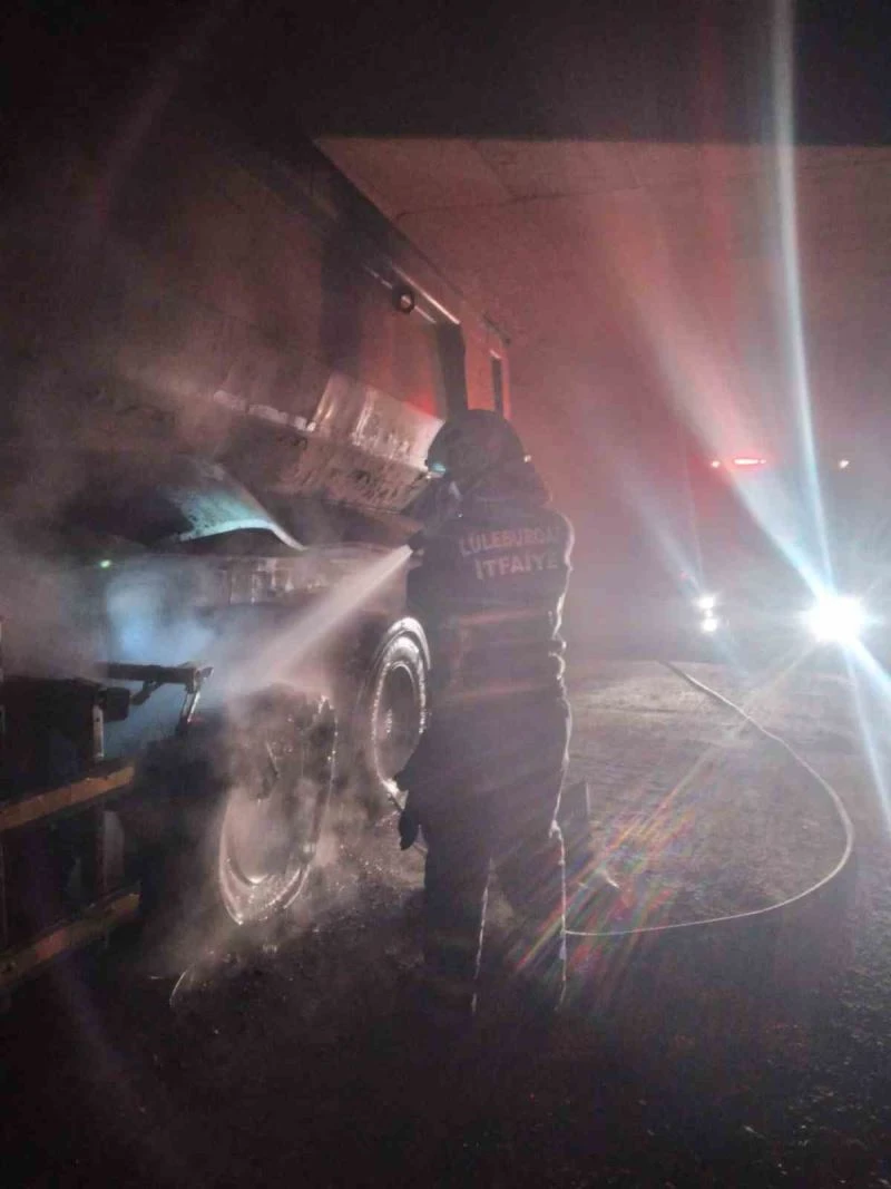 Kırklareli’nde seyir halinde alev alan hafriyat kamyonu itfaiye ekiplerince söndürüldü.