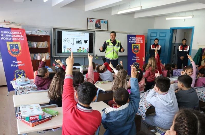 Kırklareli’nde jandarma ekiplerince ilkokul öğrencilerine trafik eğitimi verildi.