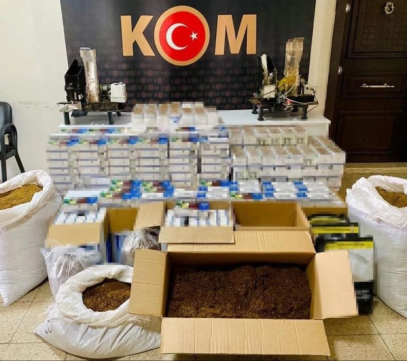 Düzenlenen operasyonda makaron doldurmak için kullanılan 2 elektrikli makine, 77 bin 800 boş makaron, 20 bin 100 içi tütün doldurulmuş makaron, 64 kilo 500 gram açık tütün, 3 kilogram bandrollü tütün ele geçirildi.