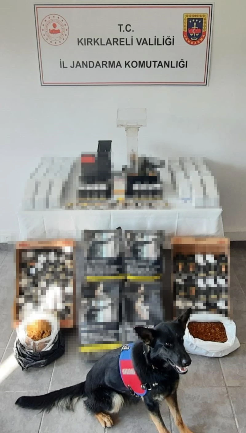 Alınan bilgiye göre, Lüleburgaz ilçesine bağlı Ahmetbey Beldesinde kaçak tütün olduğu bilgisine ulaşan jandarma ekipleri çalışma başlattı. Ekiplerce 3 şüpheliye ait ev ve iş yerlerinde çay ve tütün tespit köpeği Yıldız ile birlikte arama yapıldı. Yapılan aramada 1 adet sanayi tipi elektrikli makaron doldurma makinesi, 6 bin 460 adet içi dolu makaron, 8 kilo 255 gram sarımlık kıyılmış tütün, 1 kilogram nargile tütünü, 36 adet tütün bandrolü, bin 778 adet boş sigara paketi ele geçirildi.