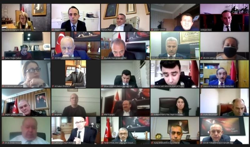 Kırklareli Valisi Osman Bilgin başkanlığında ve Vali Yardımcıları, Kaymakamlar, Belediye Başkanları, Kurum müdürleri ve STK başkanlarının katılımıyla İl Pandemi toplantısı video konferans yöntemiyle yapıldı.