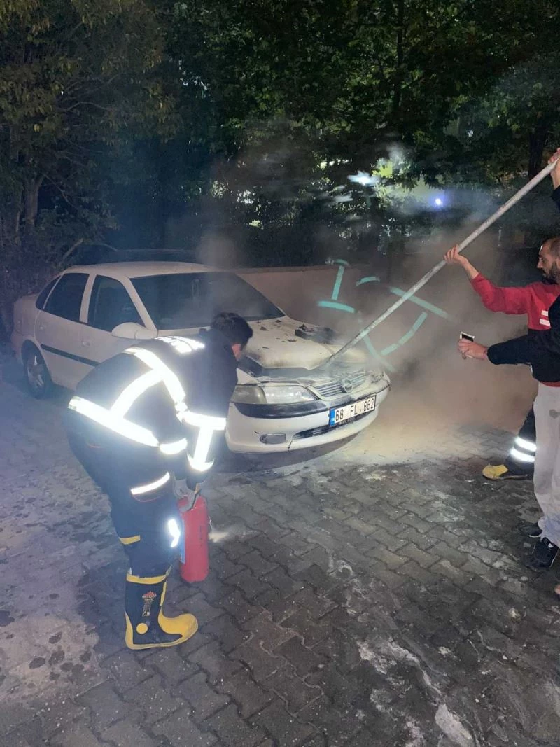 Bölgeye gelen itfaiye ekiplerinin müdahalesinin ardından yangın söndürülürken otomobilde maddi hasar oluştu.