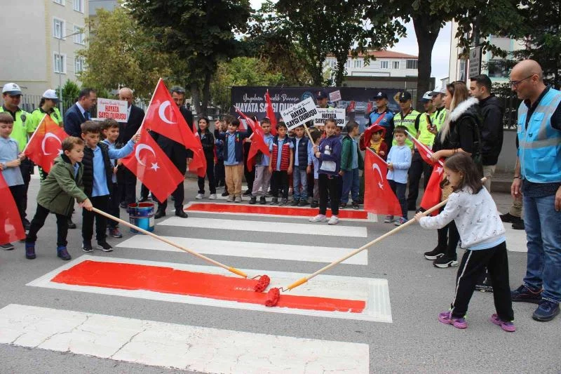 İçişleri Bakanlığınca "Yayalara öncelik duruşu, hayata saygı duruşu" sloganıyla başlatılan kampanya çerçevesinde Kırklareli’nde yaya geçitleri kırmızıya boyandı.