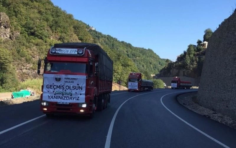Kırklareli’den sel ve heyelan felaketinin yaşandığı Giresun’a 3 tır yardım gönderildi.