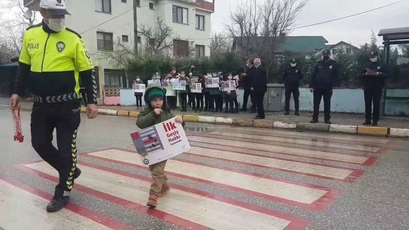 İçişleri Bakanlığı’nın trafikte yaya önceliğine dikkat çekmek için başlattığı ‘Önce Yaya’ projesi kapsamında Sakarya’nın Serdivan ve Sapanca ilçelerinde yaya geçitlerinde ’Kırmızı çizgi’ uygulamasına başlandı.