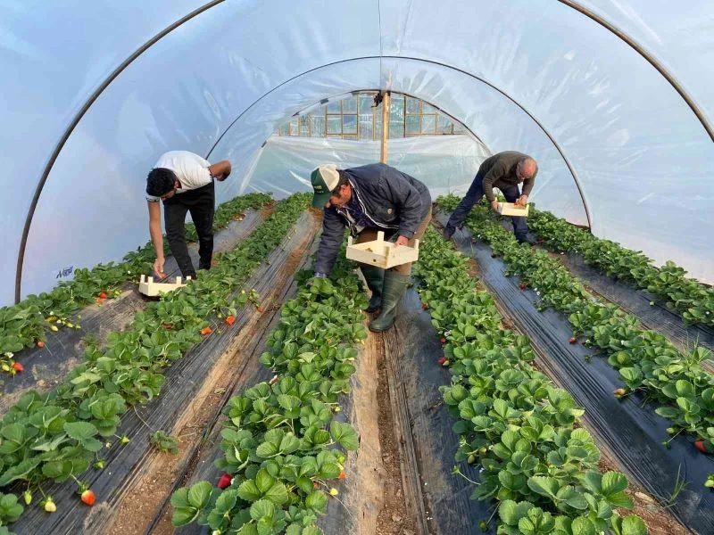 Antalya’nın Serik ilçesinde çiftçilerim binbir emekle yetiştirdiği çileklerin hasadına başlandı. Toprak seviyesinde olduğu için kış aylarında aşırı yağıştan çabuk etkilenen seralarda günlük kontroller yapılıyor. Çiftçiler kırmızı altın olarak tabir edilen ’çilek’lerine adeta çocukları gibi bakıyorlar. Dönümde ise 5 tona kadar hasat yapılabiliyor.
