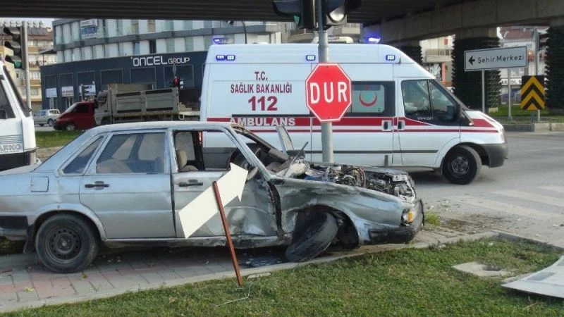 Kırmızı ışık ihlali yapan aracın çarptığı sürücü otomobilde sıkıştı