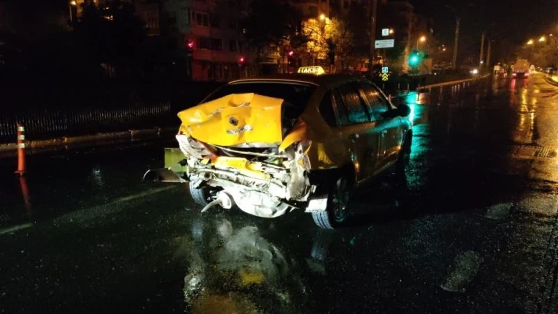 Kırmızı ışıkta bekleyen taksiye kamyonet çarptı: 1 yaralı