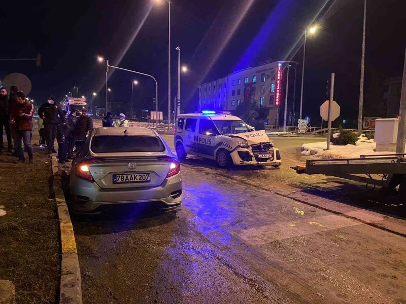 Karabük’te devriye gezen resmi plakalı polis aracı kırmızı ışıkta geçtiği sırada kavşakta otomobil ile çarpıştı. Kazada ölen ya da yaralanan olmazken her iki araçta maddi hasar oluştu.