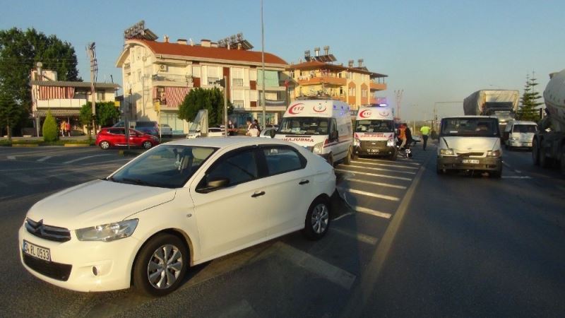 Antalya’nın Manavgat ilçesinde kırmızı ışıkta bekleyen otomobile kamyonetin arkadan çarpması sonucu yaşanan kazada aralarında bir çocuğun da bulunduğu 5 kişi yaralandı. Çarpmanın şiddetiyle araç 50 metre ileri sürüklendi.