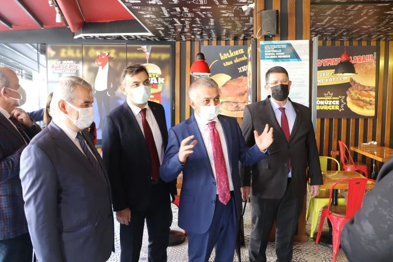 Antalya Valisi Ersin Yazıcı’ya gerçekleştirdiği denetimde, Kepez Kaymakamı Nusret Şahin, İl Jandarma Komutanı Tuğgeneral Mustafa Başoğlu, İl Emniyet Müdürü Mehmet Murat Ulucan, İl Sağlık Müdürü Ünal Hülür ve Antalya Esnaf ve Sanatkarlar Odaları Birliği Başkanı Adlıhan Dere eşlik etti.
