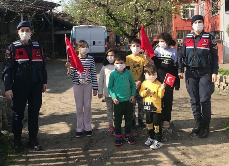 Jandarma ekipleri 23 Nisan’da köylerdeki çocukları da unutmayarak kırsal mahalleri ziyaret ederek çocuklara balon ve Türk Bayrakları dağıttı. Jandarma ekipleri, görev araçlarının megafonundan bayram şarkıları ve sirenler çalarak çocukların bayramını kutladı.