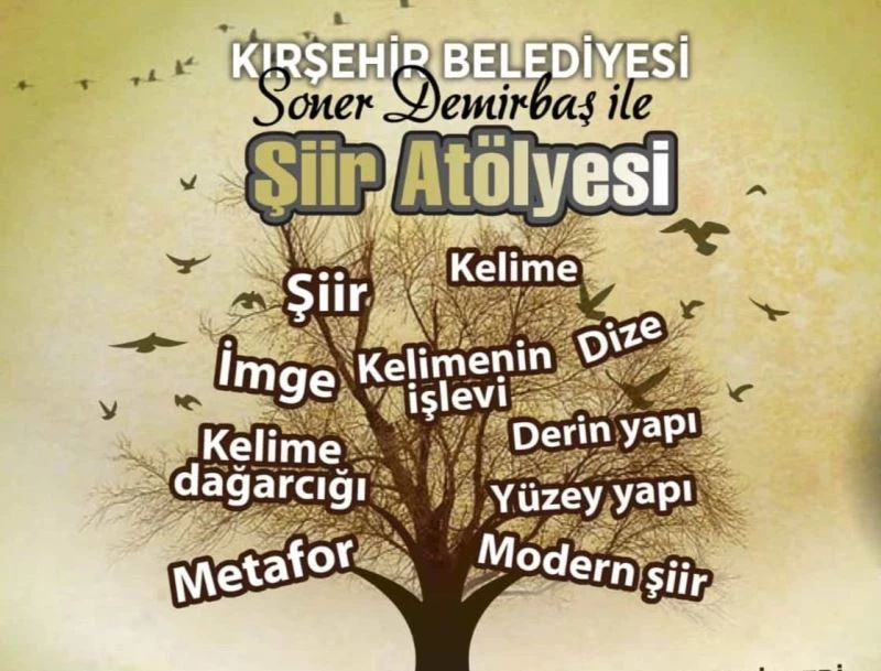 Kırşehir Belediyesi bünyesinde düzenlenecek ‘Şiir Atölyesi’ eğitim programı başvuruları başladı. Aralık ayı itibariyle Kırşehir’de, Neşet Ertaş Kültür Sanat Merkezinde faaliyetlerine başlayacak olan Şiir Atölyesi programını Basın ve Halkla İlişkiler Sorumlusu şair yazar Soner Demirbaş koordine edecek.