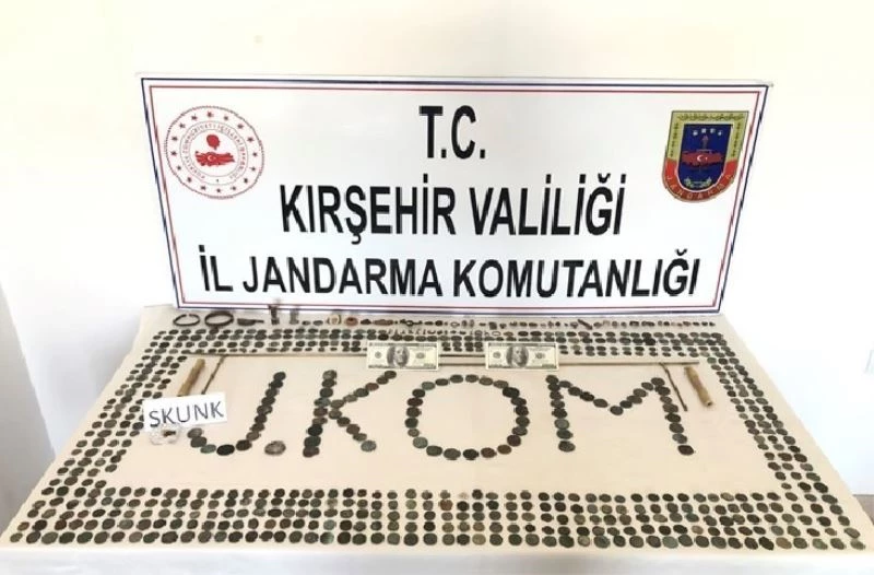 Kırşehir İl Jandarma Komutanlığı tarafından düzenlenen operasyonda Roma ve Bizans dönemine ait sikke, yüzük, bileklik ve çeşitli objeler ele geçirildi.