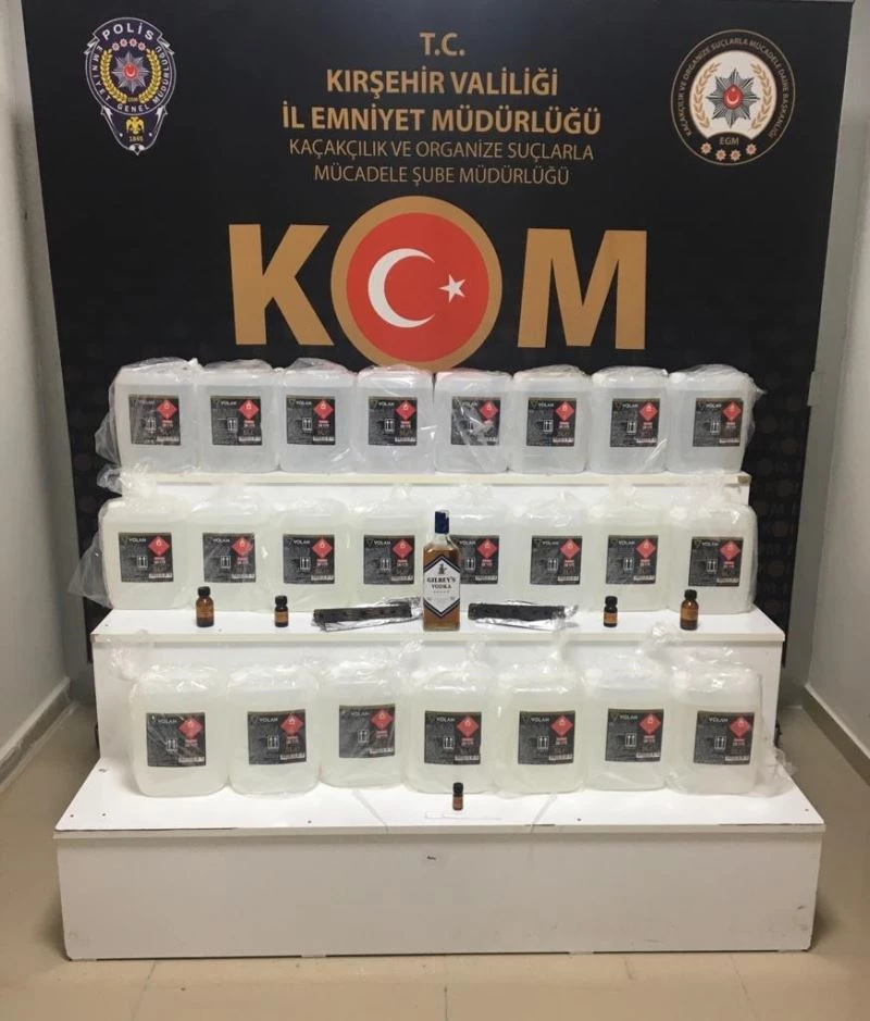 Kırşehir KOM ekipleri; yurt genelinde alkollü içki ve zehirlenmeden kaynaklı şüpheli ölümlerin artması ve yasa dışı alkol imalatına karşı kentte operasyon düzenledi. Yeni yıl öncesinde sahte ve kaçak alkol üreterek piyasaya satışını hazırlayan M.T., H,Ş., O.Ç., R.M., ve H.K. hakkında adli işlem yapıldı. Şüpheli şahıslarla birlikte 125 litre etil alkol, 4 adet rakı yapımında kullanılan anason yağı, 8 adet viski yapımında kullanılan malt aroması meşe odunu ve 3 adet alkol ölçümünde kullanılan şeffaf plastik ele geçirildi.