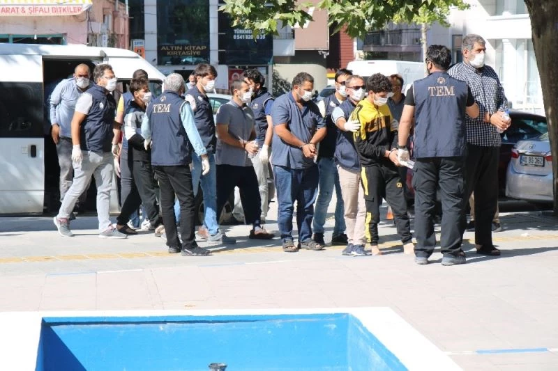 Kırşehir Emniyet Müdürlüğü TEM Şube Müdürlüğü ekipleri tarafından şehirde farklı adreslere yapılan operasyonda 10’u Irak uyruklu 1’i Türkmen 11 kişi gözaltına alındı. Emniyette alınan ifadelerinin ardından örgüt üyesi şüpheliler, geniş güvenlik önlemleri altında adliyeye sevk edildi.