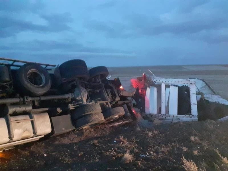 Kırşehir’de, sabaha karşı meydana gelen trafik kazasında yan yatan tırın sürücüsü yaralandı.