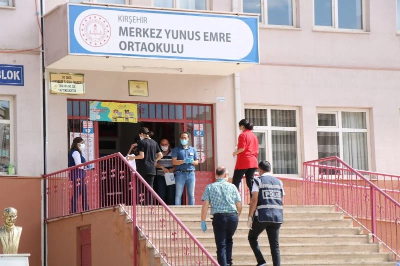 Kırşehir’de YKS’de birinci oturum olan Temel Yeterlilik Testleri (TYT) için öğrenciler okullara alındı. YKS’nin birinci oturumu olan TYT’ye giren öğrenciler, yeni tip korona virüs tedbirleri kapsamında içeri alındı. Öğrencilere sınav öncesinde dezenfektan ve maske ve mendil dağıtımı yapılırken, okul bahçesine de öğrenci velileri alınmadı.