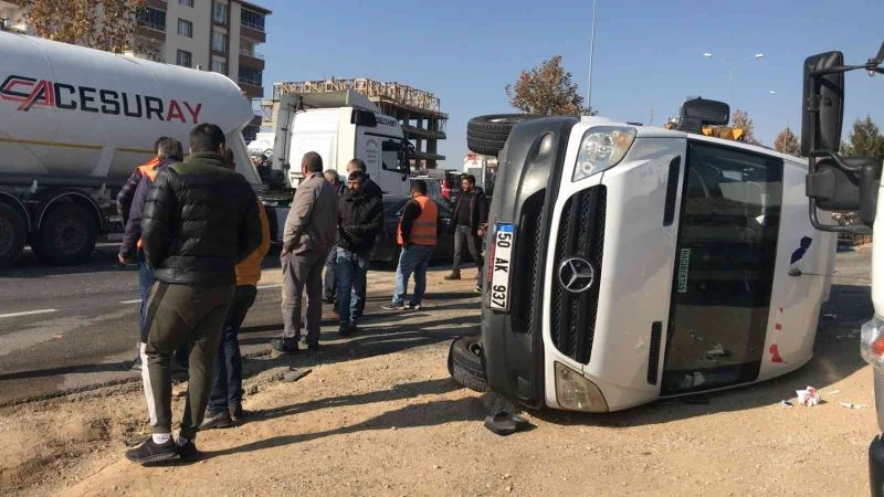 kIRŞEHİR – Kırşehir’de meydana gelen zincirleme trafik kazasında minibüsün devrilmesi sonucu 1’i ağır 14 kişi yaralandı.