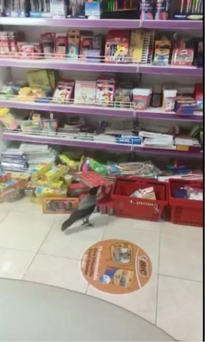 Kırtasiyeye giren karganın pinpon topu ile imtihanı