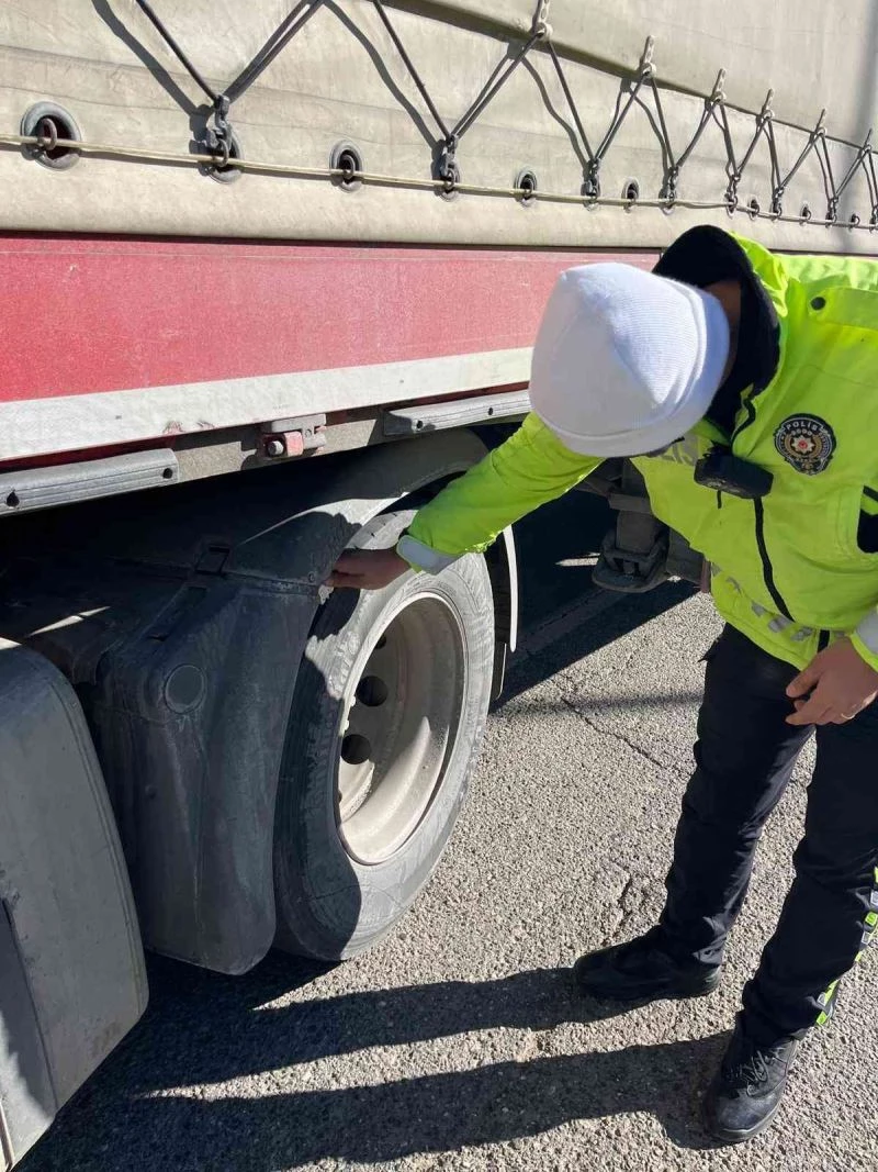 Bölge Trafik Denetleme Şube Müdürlüğü ekipleri, yük ve yolcu taşımacılığı yapan araçlara yönelik denetim gerçekleştirdi. Kamyon ve otobüslerde kış lastiğinin kullanılıp, kullanılmadığını denetleyen ekipler, 1345 aracın lastiğini kontrol etti. Denetimlerde