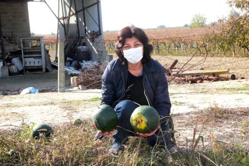 Manisa’nın Sarıgöl ilçesinde yaşayan çiftçi Mesude Helvacı, nisan ayında ektiği karpuzları kasım ayında hasat etmeye başladı. Yaz meyvesi olarak bilinen karpuzun sonbaharda hasat edilmesi dikkat çekerken, karpuzların dayanıklı bir tür olduğunu belirten Helvacı, "Bu karpuzları, yeşil karpuz tohumlarından diktim. Üç kök bostandan bir traktör karpuz aldık. Halen daha yemekteyiz. Tadı çok güzel, dayanıklı bir tür. Kasım ayındayız ama halen ürün veriyor. Ama son günlerde sabahları oluşan kırağı nedeniyle artık kurumaya başladı. Son hasadımızı yaptık" dedi.