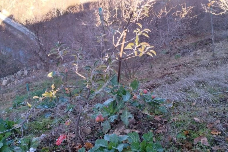 Ağustos ayında genç elma fidanının ikinci kez çiçek açtığını kaydeden Güvendi, “Ağustos başında elma fidanı çiçek açmıştı. Bir arkadaşım buradan geçerken mevsimler şaşırdı demiş bende insanlar şaşırdı demiştim. Güç sahibi ol dediği zaman olur, olma dediği zaman yok olur. Yeni yılın üçüncü gününde şu gördüğünüz Ağustos ayında çiçek açan elma fidanının meyveleri ortada. Bizler elimizi kafamızın arasına alıp iyi düşünmemiz lazım. Allah yar ve yardımcımız olsun” diye konuştu.