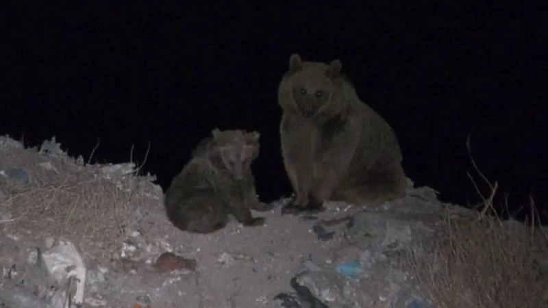 Erzurum’un Şenkaya ilçesinde yiyecek bulamayan boz ayılar, şehir çöplüğünde kameralara yansıdı.