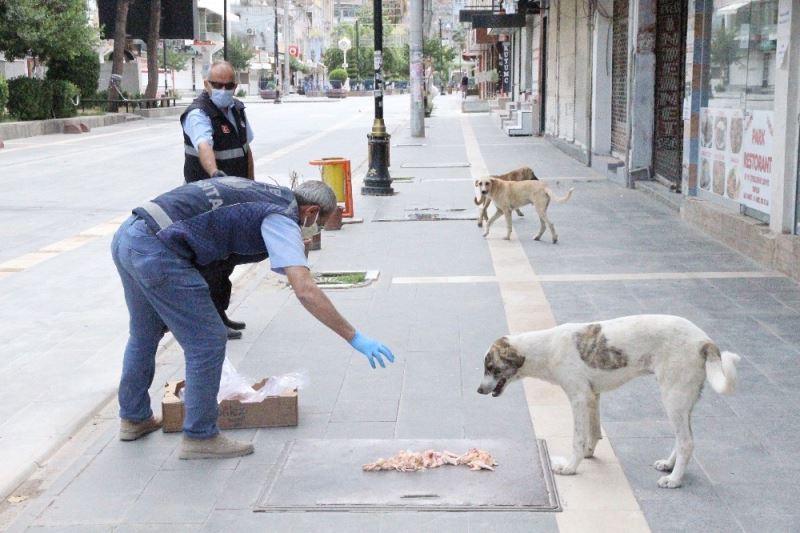 Korona virüsle mücadele kapsamında 81 ilde 4 gün sürecek sokağa çıkma kısıtlaması başladı. Mardin’in Kızıltepe ilçesinde zabıta ekipleri sokak hayvanlarının aç kalmaması için tavuk eti satışı yapan yerlerden temin ettikleri etleri hayvanlara dağıttı.
