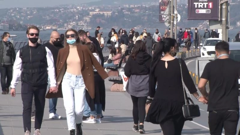 İstanbul’da havanın güneşli olması nedeniyle yoğun bir kalabalık pandemi kurallarını yok sayarak Salacak Sahili’nde toplandı. Bazı kişiler sosyal mesafe kuralına uymayarak banklarda otururken, bazılarının da maskesiz olduğu görüldü. Yoğunluk havadan görüntülendi.