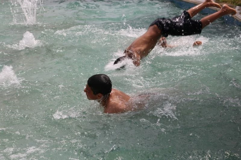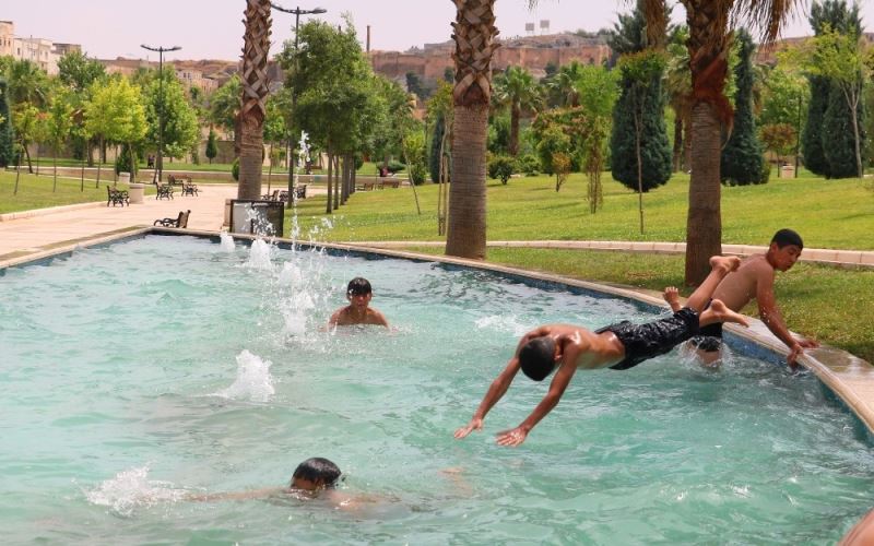 Şanlıurfa’da normalleşme sürecinde 18 yaş altı için kısıtlama kalkınca çocuklar süs havuzlarına koştu.