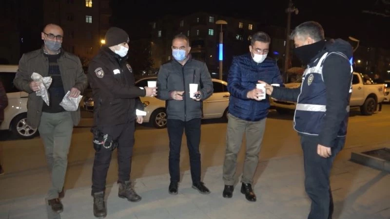 Kısıtlama nöbeti tutan polislere sıcak çorba ikram edildi